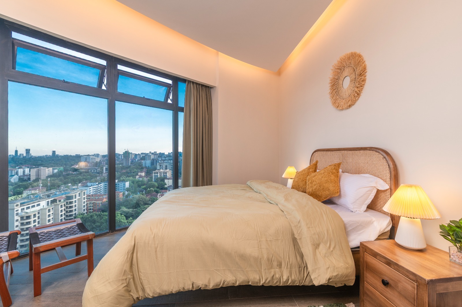 Step into a beautifully bright and modern 2-bedroom apartment in one of Nairobi’s most coveted neighborhoods. Located on 14th Floor of a high-end residential building with breath taking city views and lots of Sun all day long. This space is perfect for families, friends, or professionals seeking comfort and convenience in Kenya’s capital. What You’ll Love About This Home • Comfortable sleeping for up to 4 guests across two cozy bedrooms • Fully equipped kitchen with modern appliances (oven, microwave, washing machine and dishwasher) • Membership based rooftop gym and heated pool • Free parking and secure building access for peace of mind throughout your stay • Situated on church Road, just off Rhapta Road in buzzing Westlands Direct access to Wayaki Way and Expressway, making it convenient for UN, Lavington and JKIA